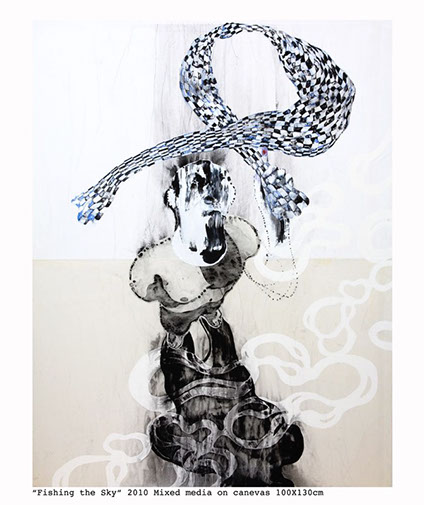 this work is a self-portrait through the intermediary of a bird: a representation of the bird`s mental picture that examines the inner psyche of the human being. As a bird takes flight and its eyes wander without territories or borders, the travel unearths a discriminating purity of impressions. These works are icons that interrogate the place of humankind.